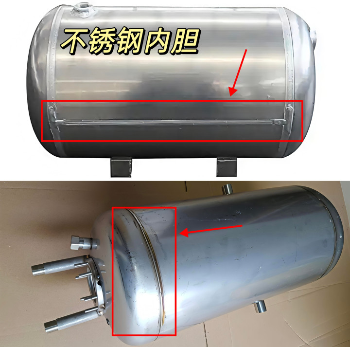 千万别装∶不锈钢内胆,两侧都有焊点,并且耐腐蚀性一般,容易出现渗漏风险;长期使用会结水垢、滋生细菌。
