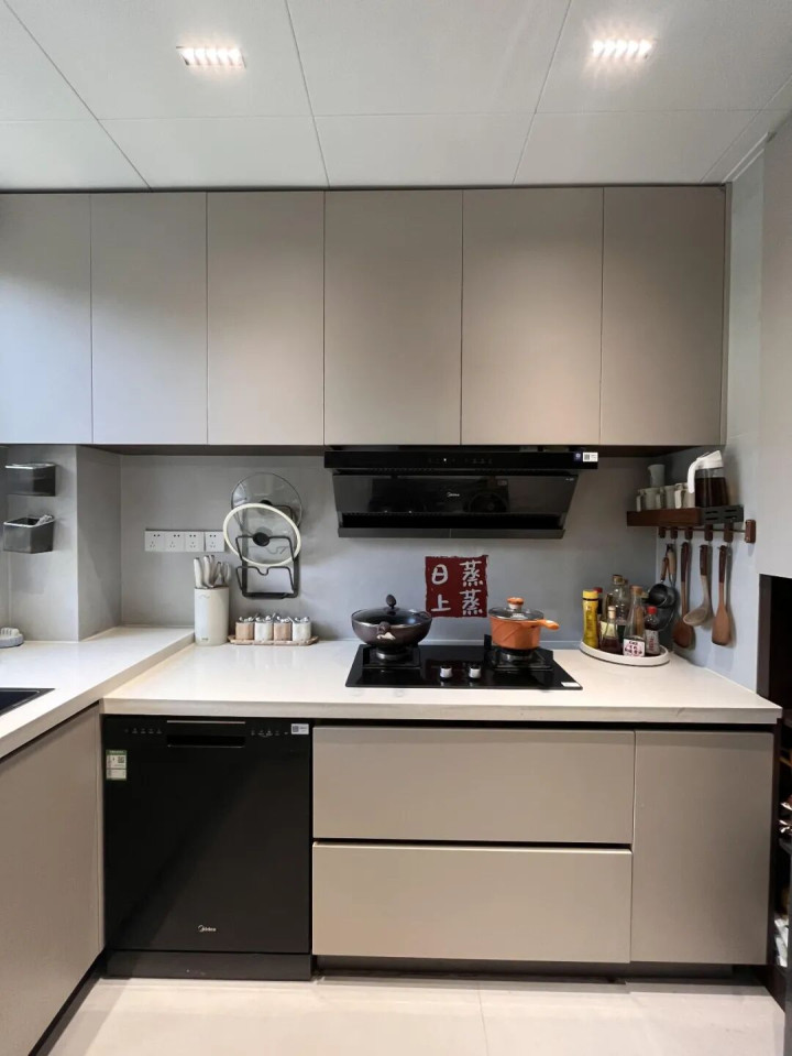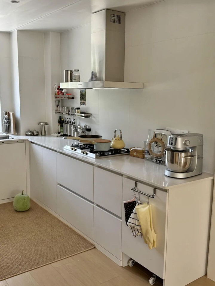 有次去邻居家串门,看到她家厨房没装吊柜,但干干净净,整整齐齐,整个空间很通透,4平米的小厨房,比我家显大很多,瞬间破防了。