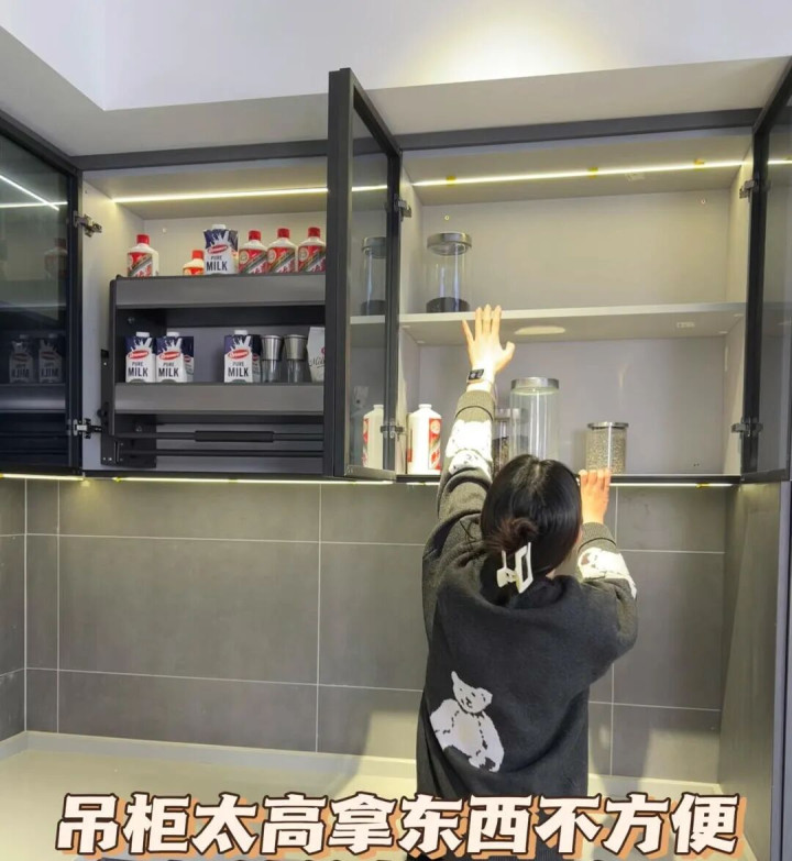 1米75的壮汉,拿吊柜第二层的东西,都得踮脚、伸胳膊,跟表演杂技似的。顶层更是但凡塞进去的东西,大概率会被遗忘,直到搬家时才会发现。